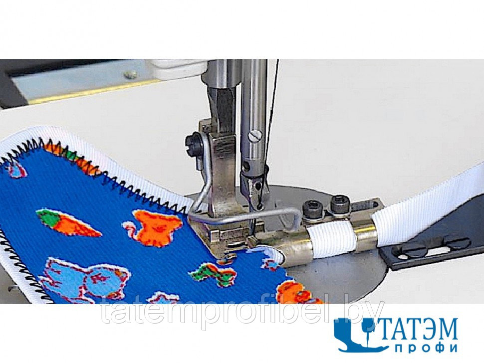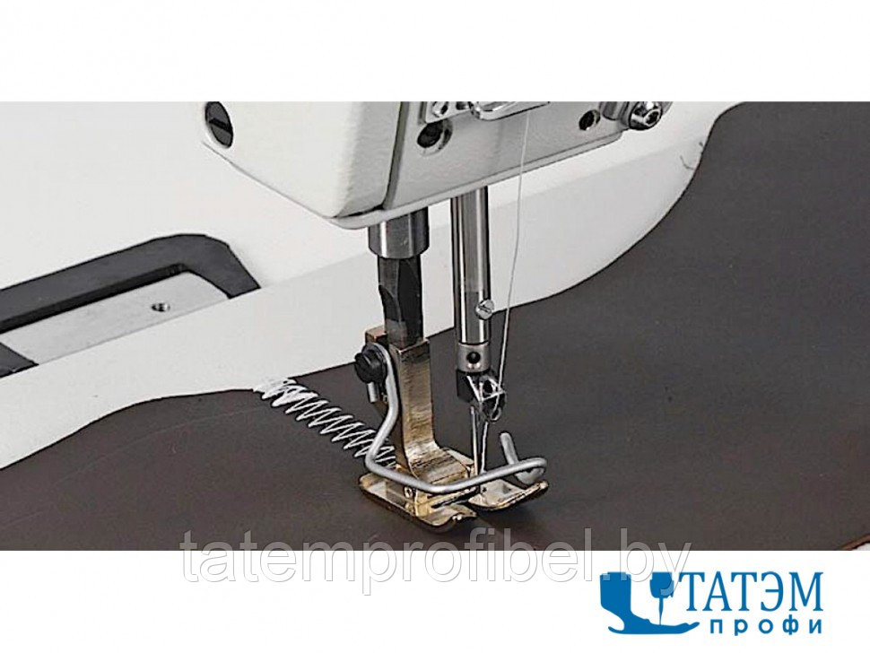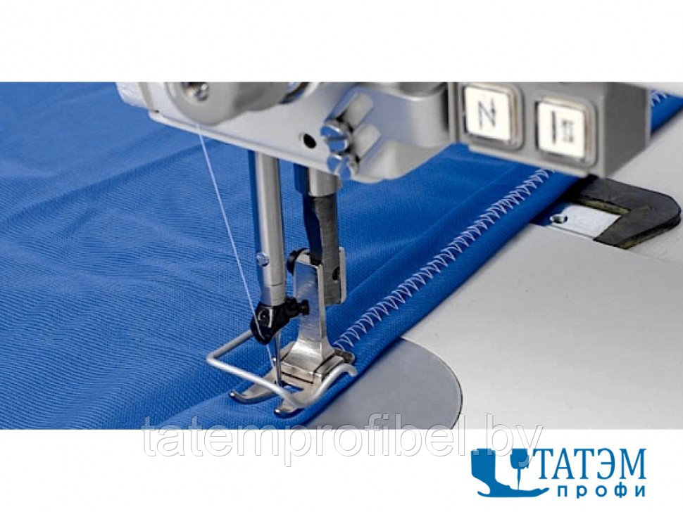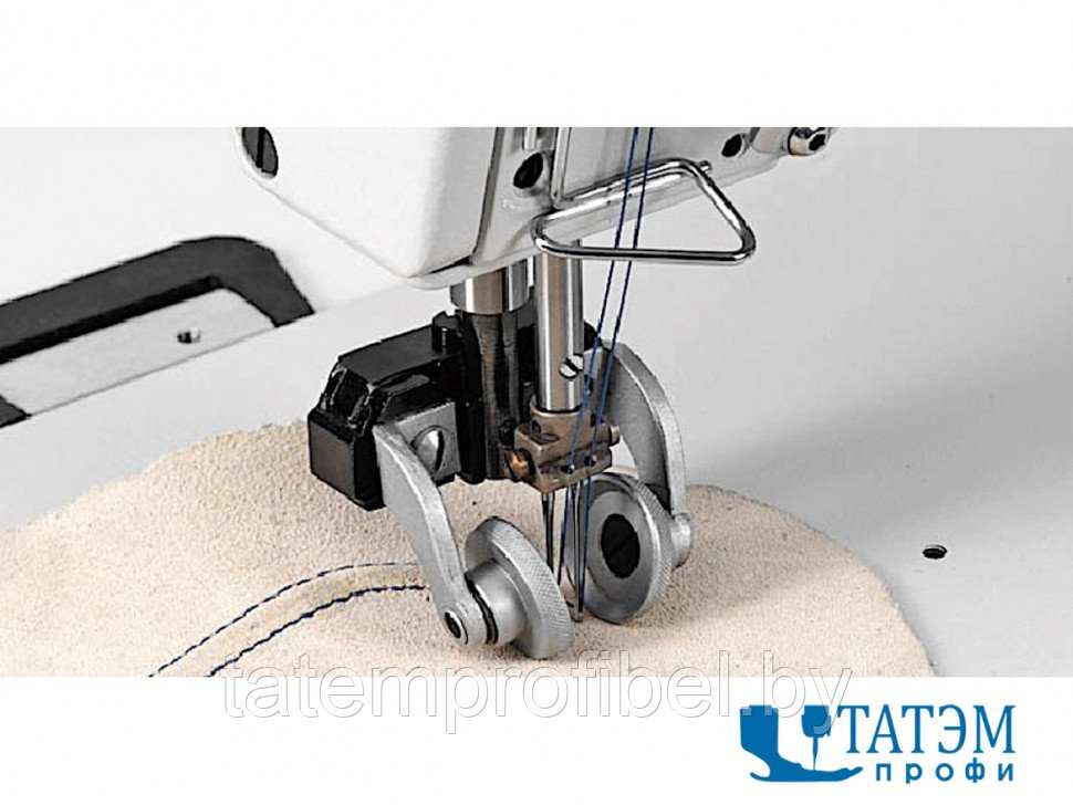 - Особенностью данной модели машины является возможность пошива лёгких и среднетяжёлых типов брезента, пошив при монтаже плоских фильтров и пошив текстильных материалов для технического использования. Машина без проблем прошивает материал толщиной 8 мм с использованием нитей до №15/3. Оборудована автоматическими функциями обрезки нити, закрепки и подъема лапки. Благодаря наличию дополнительных приспособлений машина может не только стачивать детали встык, но и выполнять окантовочные работы, пошив двумя иглами с прокладыванием тесьмы (жгута) снизу.