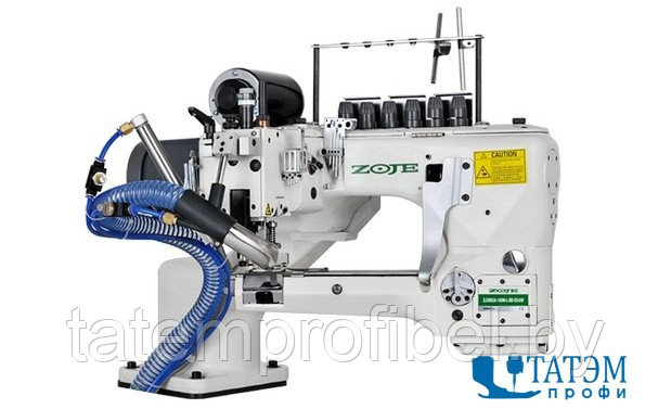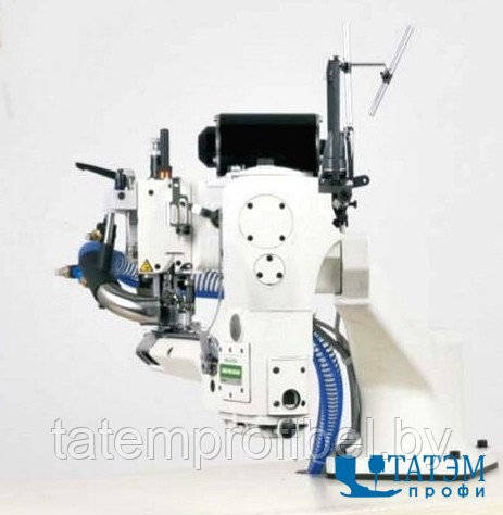 Четырехигольная шестиниточная распошивальная машина, узкий рукав, встроенный серводвигатель, для высокоэластичных легких и средних материалов, с обрезкой срезов и отсосом обрези (с необходимостью подключения воздуха).