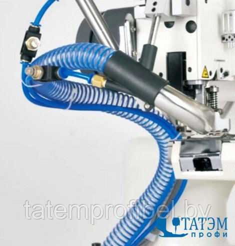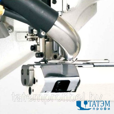 Благодаря наличию узкой платформы можно с легкостью выполнять операции на рукавах или каких-либо других подобных узлах. Машина очень проста в обслуживании, а дополнительный пневматический механизм воздушного отсоса обрезки изделия позволяет тратить меньше времени на чистку оборудования, и удаляет самые мелкие частицы мусора.