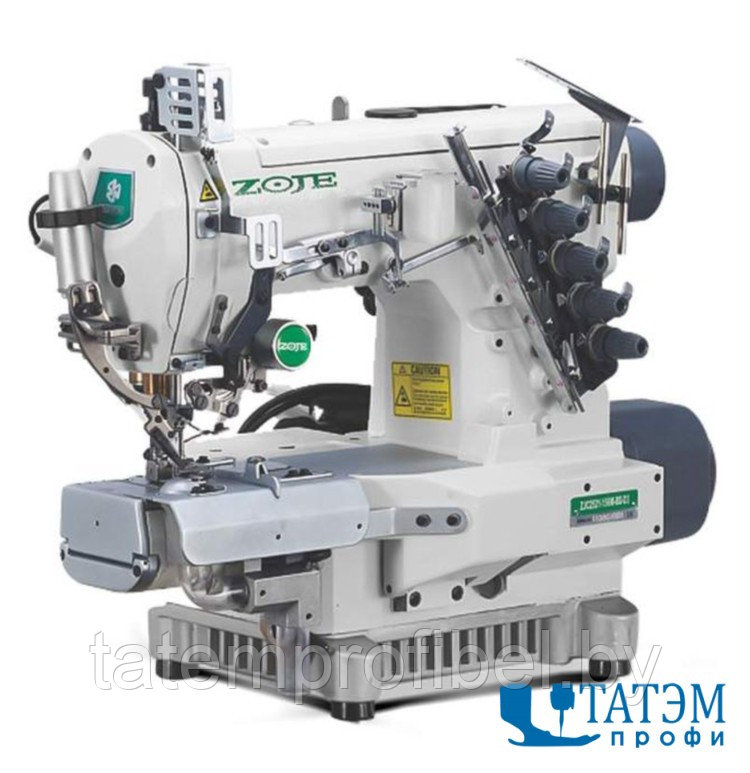 Трехигольная пятиниточная, плоскошовная машина с цилиндрической платформой и энергосберегающим приводом предназначена для шитья трикотажных и эластичных тканей ,в таких изделиях как спортивная одежда, футболки, нижнее белье, а цилиндрическая платформа машины позволяет легко обрабатывать круговые детали одежды.