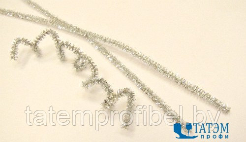 Проволока для плетения с ворсом (синель/шенил) 0,6 х 30 см, арт. В 007 люрекс серебро, уп. 100 штВ наличии